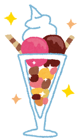 パフェとサンデーどちらも今ではほぼ同じ物を差す言葉です。あのおいしいあれです。